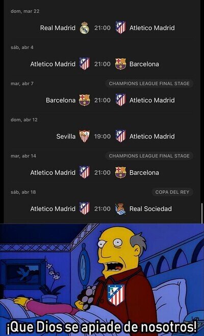 El duro calendario que le espera al Atleti