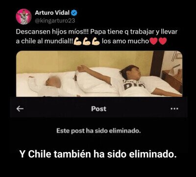 Arturo Vidal ha acabado por borrar este post tras quedarse fuera del Mundial por tercera vez consecutiva