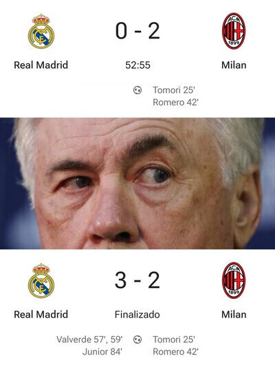 #3 #3 viniciussenior dijo: culerdos, mirar bien hoy porque vereis como se juega al fytbol y como el gran rey blanco domina en europa como quiere. yo veo un 4-0 con el madrid ya en semis y el la vuelta haciendo rotaciones carletto @viniciussenior Casi aciertas, paleto.