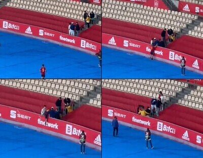 Despues del partido, Gavi saltó a la grada donde le esperaban familiares y amigos de su pueblo. Un niño cumpliendo su sueño