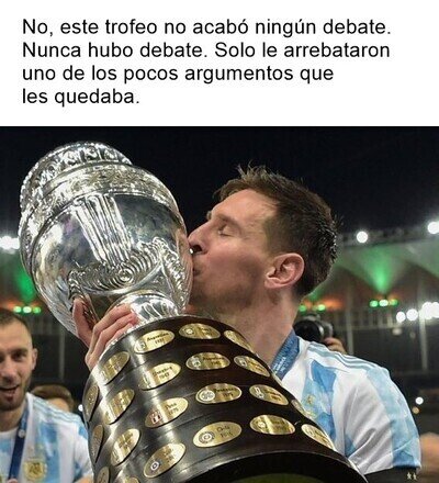 #2 #2 rmadero_7 dijo: Se que muchos no creerán esto porque llevan años escuchando lo contrario. Pero aunque Messi sea/haya sido el mejor futbolista del mundo (o de la historia), no todo el mundo tiene como objetivo en la vida comerle los cojones al 10!!@rmadero_7 Que buen resumen!