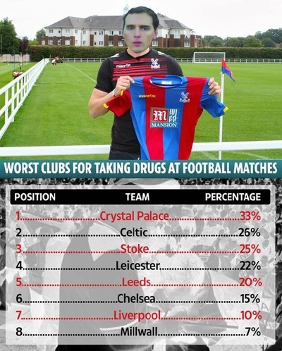 Nuevo fichaje del CRYSTAL Palace, el equipo con la afición más consumidora de drogas