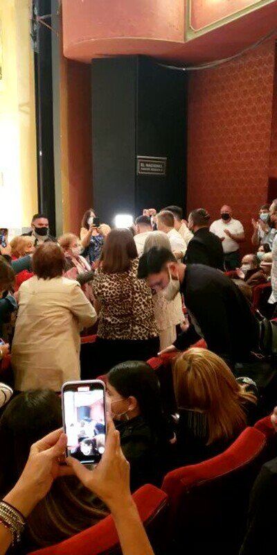 Leo Messi se roba toda la atención al asistir al teatro. Y le hacen subir al escenario entre coros.