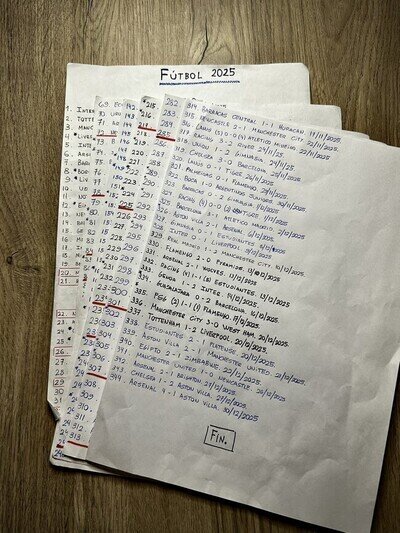 Un fan anotó todos los partidos que vió en 2025. Casi uno por día.