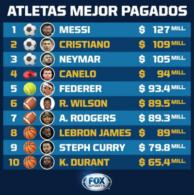 Los atletas mejores pagados, vía FOX