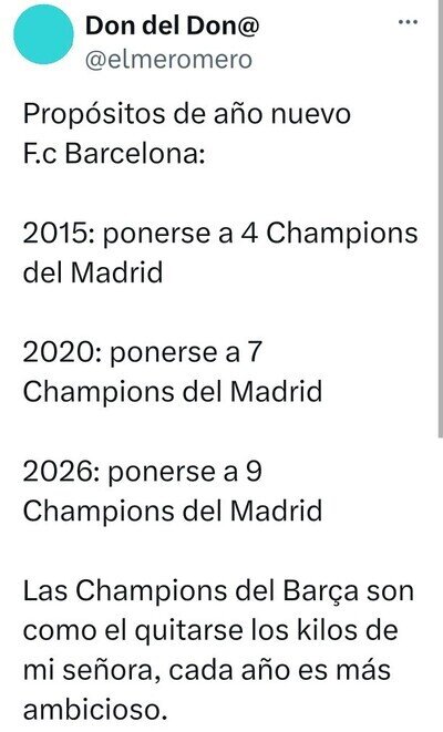 Mucho te ries de lo de Lamine, o la mala gestión de TersTegen, pero con lo de vinicius ni pio, deja de buscar pajas y mira tus vigas.@dave85 Será porque no he dicho por activa y por pasiva que ya deberíamos haber vendido a Vinicius en 2022 xD Pero como siempre, en tu línea, "y tú más" aunque sea mentira, claro.