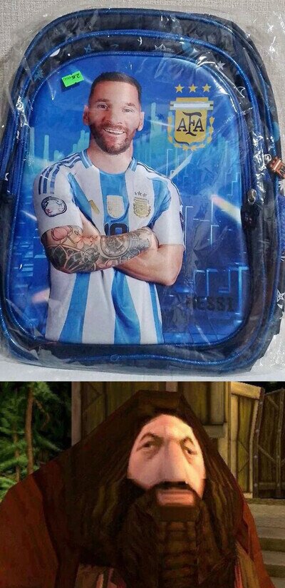 La cara que se me quedó al ver que me regalaron esta mochila de Messi