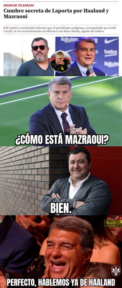 Laporta y Mino Raiola se reúnen por Haaland y Mazraoui