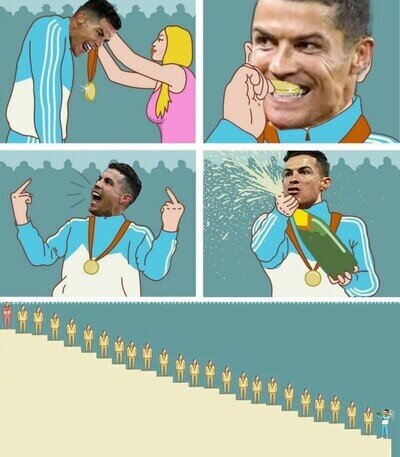 Cristiano celebrando una nominación al balón de oro. La vara esta por el suelo.