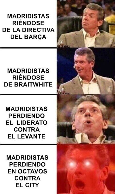 #2 #2 joel_18_10 dijo: #1 @trollhater Otra vez con esta foto desgraciado, que es 1997, no se yo , pero creo que han pasado 21 años y los jugadores son otros... Pero si sigues escocido porque os ha eliminado el Leganés y estáis a 19 y jugáis contra el PSG, no es mi culpa saes@joel_18_10 y aunque pasen 50 años, aunque llo niegues volveriais a hacer lo mismo o incluso peor.