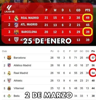 #18 #18 javlop dijo: Nos quitan la opción que teníamos hará unos años de ver la mayoría de los partidos de la máxima categoría en abierto y gratis, nadie se queja, y ahora que nos "regalan" los partidos de 2º que (aunque sea impopular) a la mayoría no interesa y ¿les tenemos que aplaudir?. Cuando era más joven recuerdo ver con mi abuelo en Telemadrid los Madrid-Barcelona, los Madrid-Atletico... y ahora que tengo que conformarme, con ver (Con todos los respetos) un Alcorcón-Sabadell? pues no me compensa lo siento.Si ven que tiene tirada igual ponen partidos de primera, aunque de los partidos del madrid y barça olvídate.