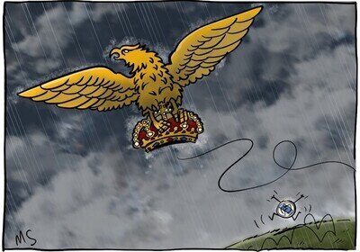 No se si sonrie por respeto, porque por la mueca del principio, se le nota bastante molesto.
