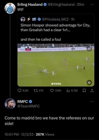 #3 #3 feybol dijo: #1 @kama Y, así como dato, el Madrid se ve obligado a fichar por marchas inesperadas como Varane o Casemiro, las cuales ya de pasó hacen que tanto en la 22/23 como en la 21/22 y en la 23/24 tiene 122 millones en negativo de los cuales 100 son de Bellingham, que visto lo visto sale barato.