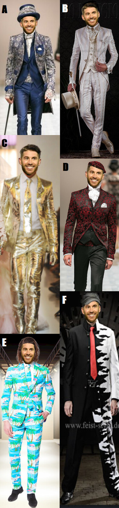 Si tuvieras que elegir uno de estos modelitos para el traje de novio de Ramos, ¿cuál hubieses elegido?