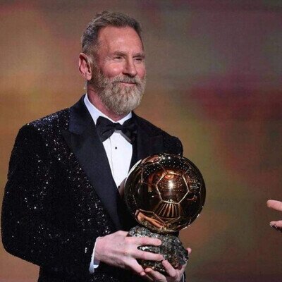Messi en 2050 recibiendo el balón de oro por marcar un hat-trick de penalti a sus nietos