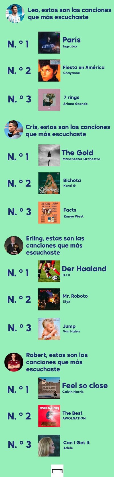 Las canciones más escuchadas por los cracks mundiales