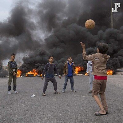 Una de las candidatas a fotografía del año: La imagen de niños iraquíes jugando fútbol con la destrucción en el fondo