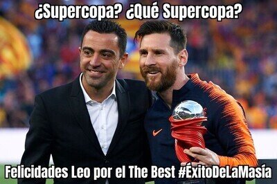 #11 #11 ilicitano_ElcheCF dijo: #4 A mi me hace más gracia esto. Es una página de humor. Os quejais porque hacen carteles de humor. Muchas veces se exageran. Lógicamente, Valdés es un gran portero, si no, no hubiera ganado lo que ha ganado y no estaría en la Selección Española. Eso no quiere decir que hagan un cartel de HUMOR. Ya que yo a Memedeportes vengo a reirme y pasarmelo un rato bien, no a elogiar a todos los jugadores. No, pero es que ya es excesivo, lleváis con Valdés desde la cagada de la Supercopa. Creo que ya es demasiado.